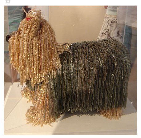 | tu as pu voir les deux zabou ?? c'est le mot extraordinaire n'est ce pas ?? il à l'air grand , sur le coup je me suis dit , c'est en perle ce chien ? rhooooo mais ouiiiii !! les couleurs , tout est terrible , les pompoms sur les pattes !! pfff |